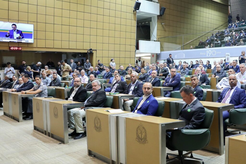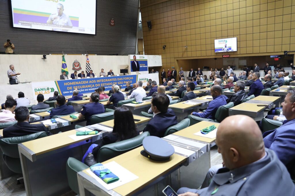 A Assembleia Legislativa do Estado de São Paulo promoveu uma Sessão Solene, nesta sexta-feira (23), para reforçar o protagonismo político de agentes da segurança pública eleitos para prefeituras e câmaras municipais em 2024. De acordo com levantamento do deputado Agente Federal Danilo Balas (PL), são 244 nomes no estado, que foram homenageados no Plenário Juscelino Kubitschek.